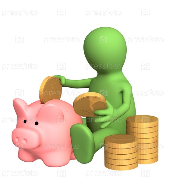 Маленький человек, сбрасывающий монету в свинину