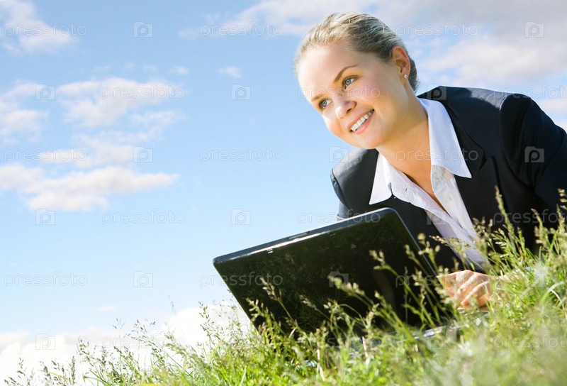 Портрет красивой бизнес-леди, работающей во время отдыха