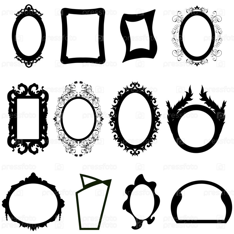 Коллекция силуэтов различных зеркал на белом фоне