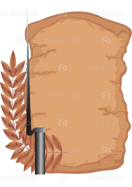 Штык от винтовки и оливковая ветвь на фоне старинного пергамента
