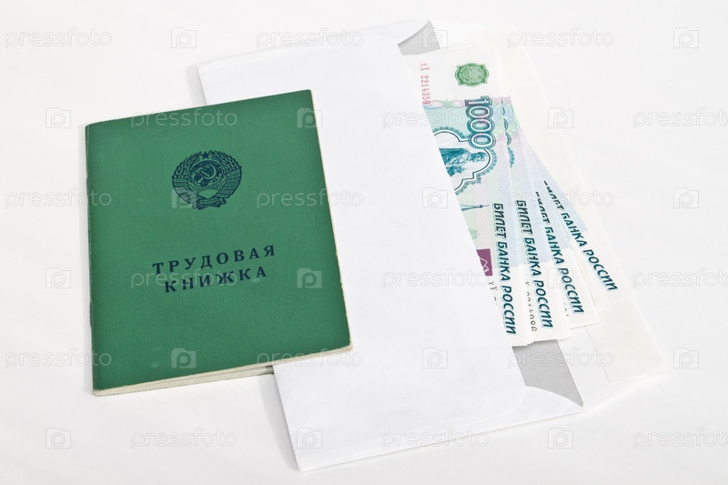 Трудовая книжка и деньги в конверте