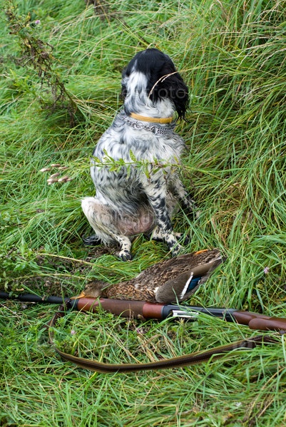 Русское орудие охотничьего спаниеля и утка