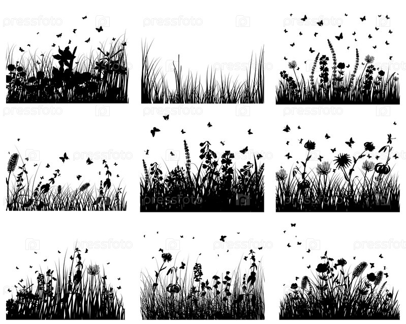 Коллекция из силуэтов трав на белом фоне