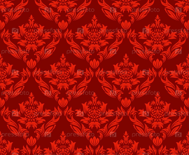Дамасский цветочный красный узор