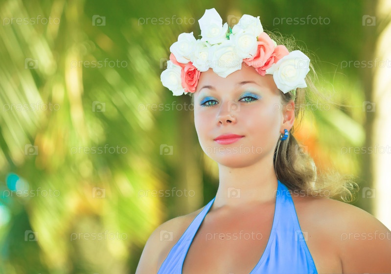 Портрет девушки в цветочном венке на курорте