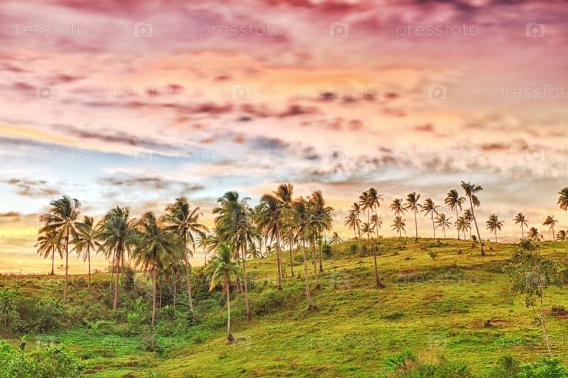 Сельский пейзаж на закате. Донсоль. Филиппины