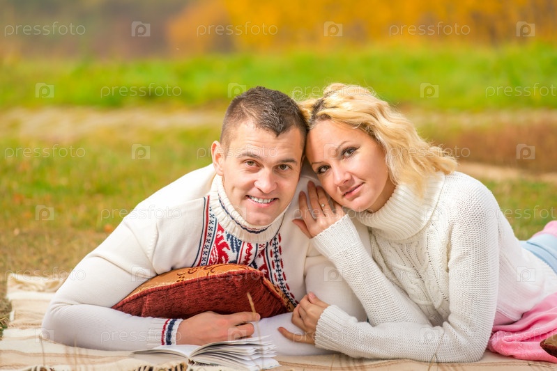 Счастливые влюбленнные на пикнике
