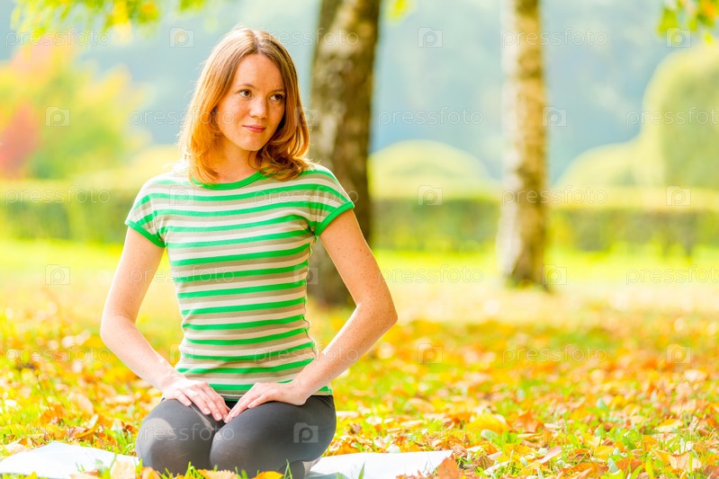 Девушка с карими глазами сидит на траве