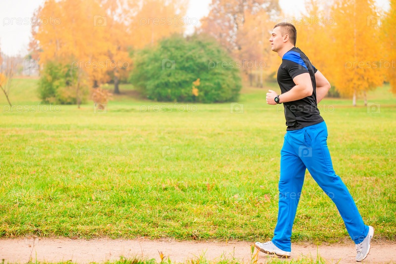 Спортсмен бежит трусцой в утреннем парке