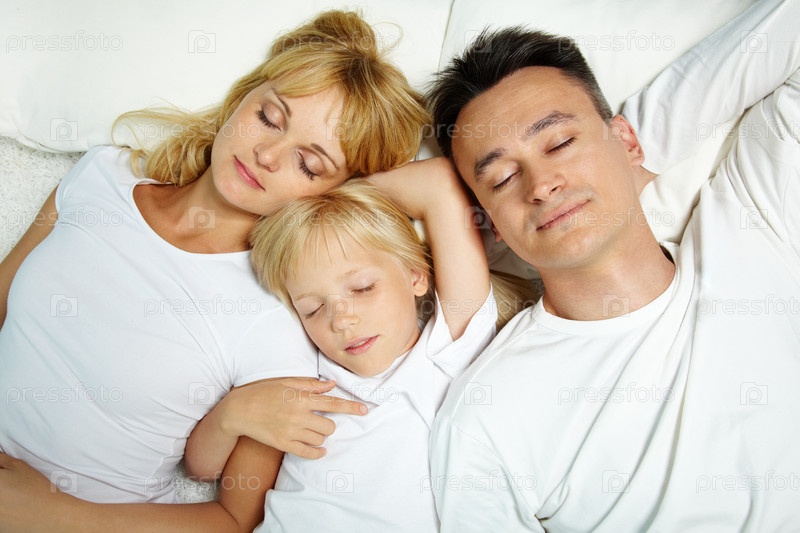 Девочка спит в постели с родителями