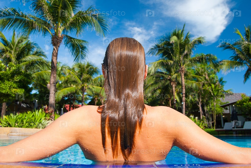 Девушка стоит в бассейне