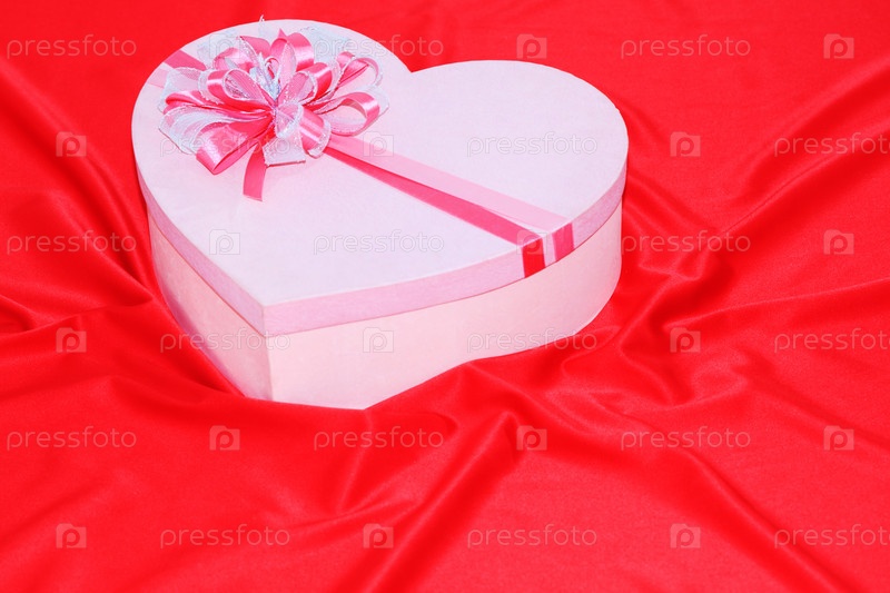 Подарочная коробка на красном шелковом фоне