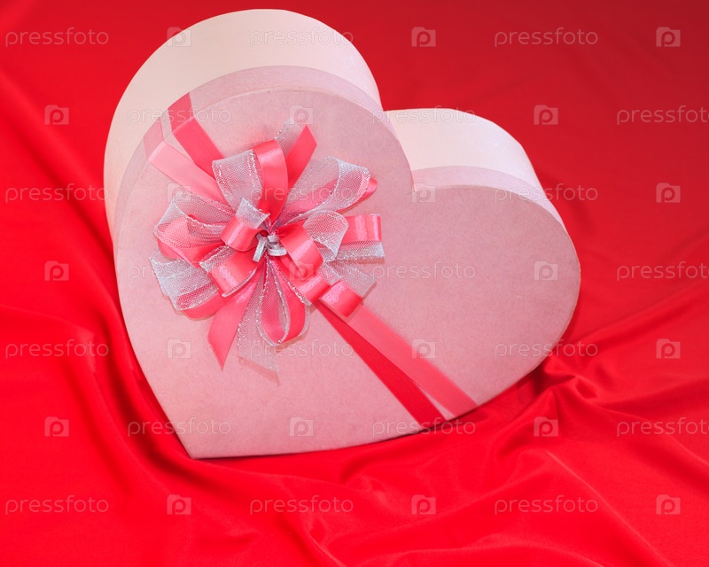 Подарочная коробка на красном шелковом фоне