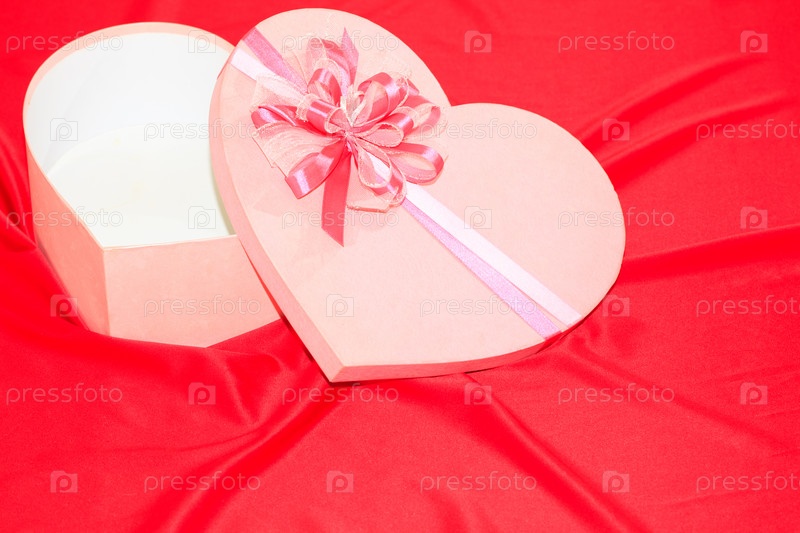 Подарочная коробка на красном шелковом фоне