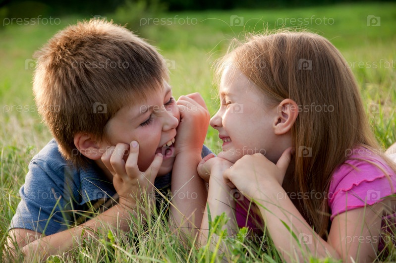 Мальчик и девочка, лежащие на траве