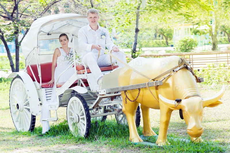 Молодожены в карете с быком