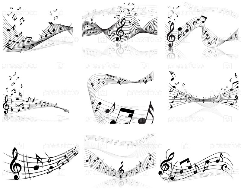 Набор векторных музыкальных фонов из нотной строки в 3D-дизайне