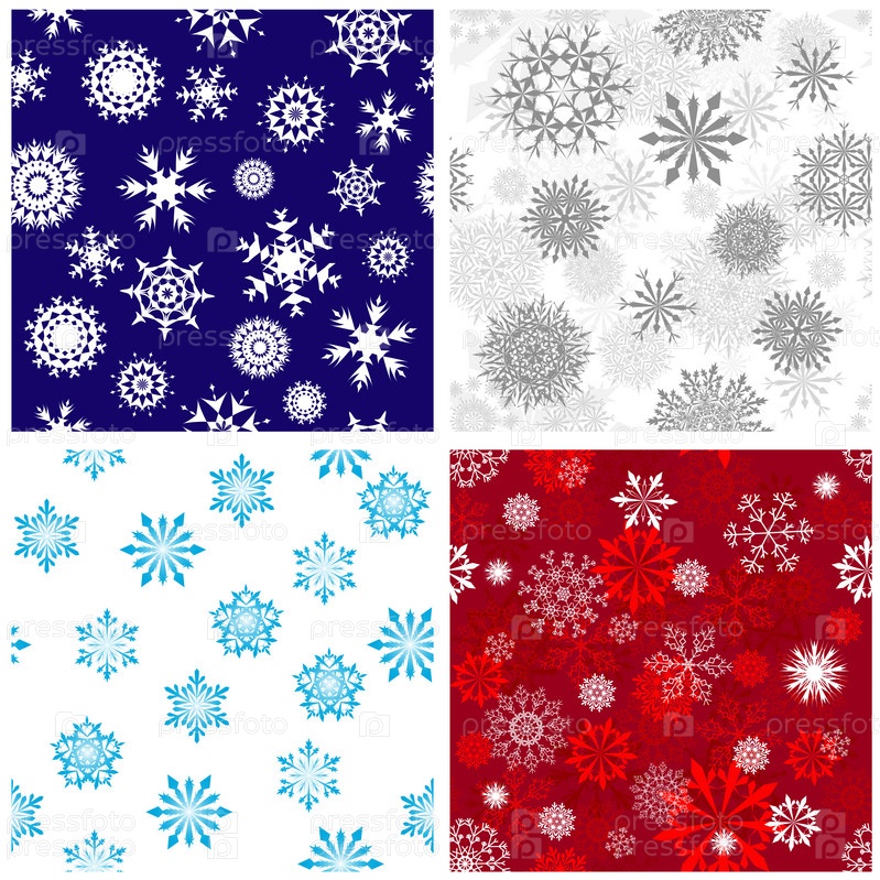 Коллекция из четырех узоров из снежинок для зимних и рождественских тем