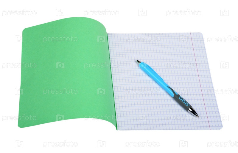 Тетрадь и ручка на белом фоне