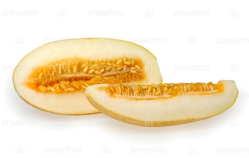 Разрезанная дыня на белом фоне