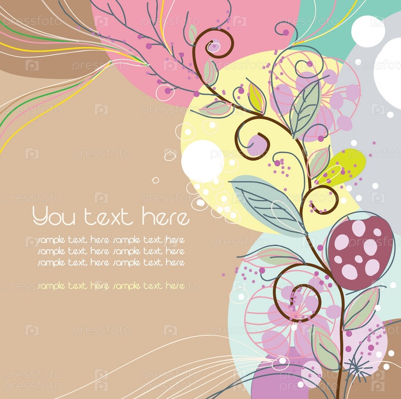 Бежевый векторный фон с цветным растительным узором по краю