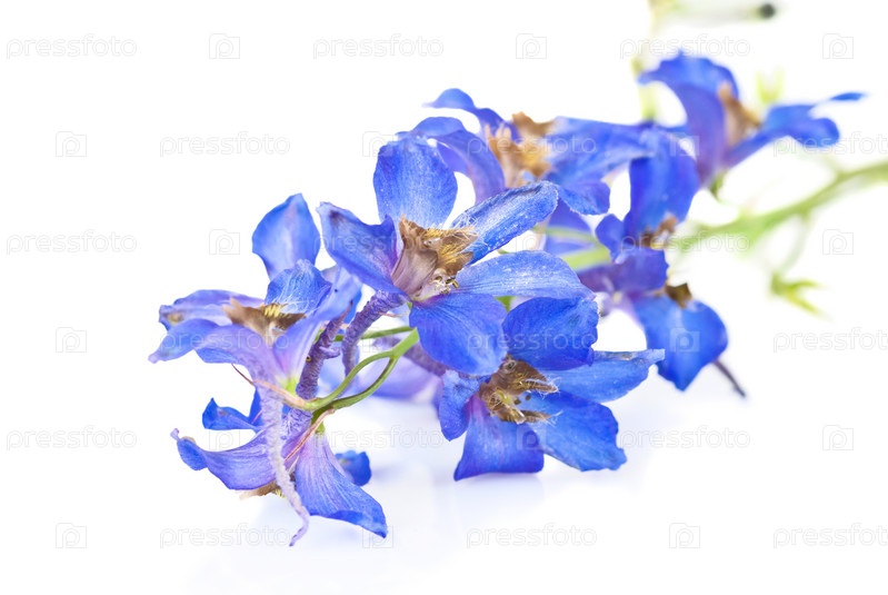 Красивые голубые цветы дельфиниума на белом фоне