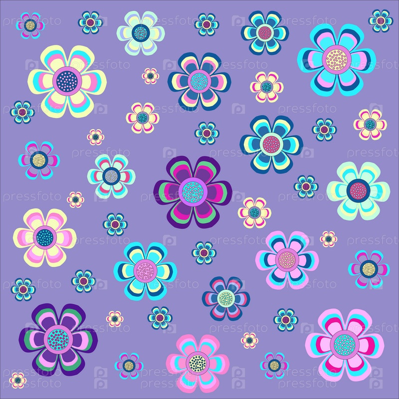 Векторный сиреневый фон с разноцветными цветами