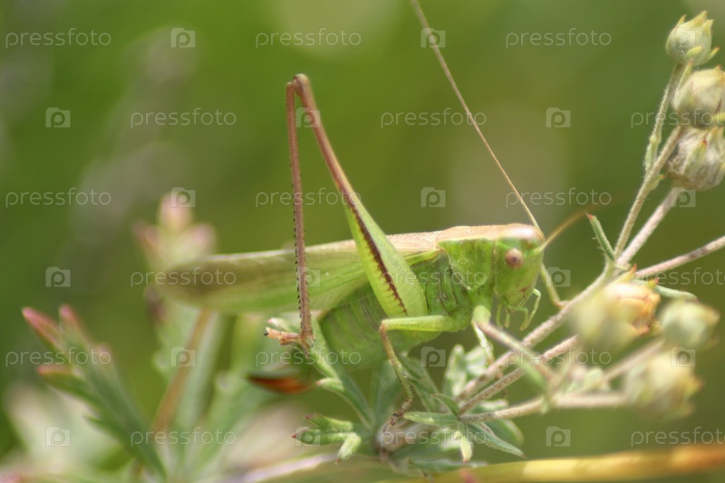 Кузнечик на зеленой ветке