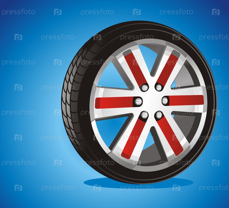 Колесо от автомобиля с литым диском на синем фоне