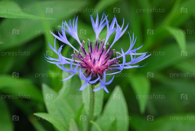 Синий василек на зеленом лугу