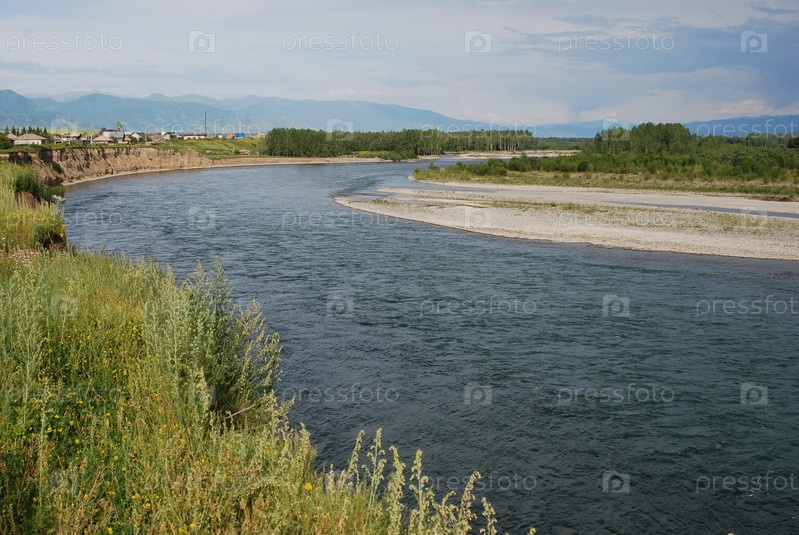 Слияние рек Кокса и Катунь в районе с. Тюнгур, Горный Алтай