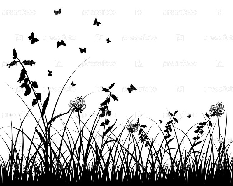 Силуэт травы и бабочек