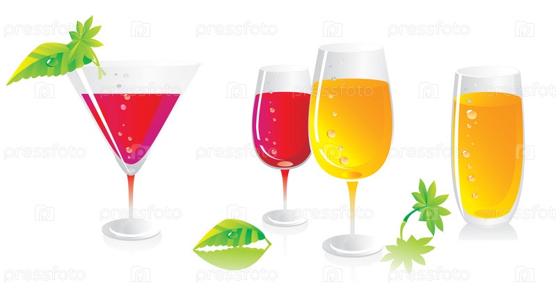 Бокалы с различными напитками на белом фоне
