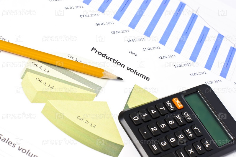 Калькулятор и карандаш на листе с диаграммамим