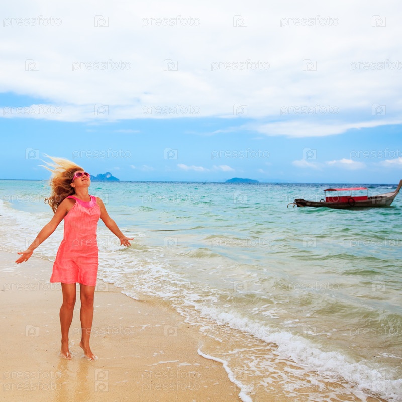 Девушка в сарафане на пляже
