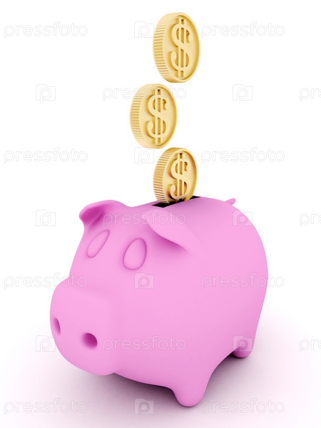 Копилка и монеты, векторная иллюстрация на белом фоне