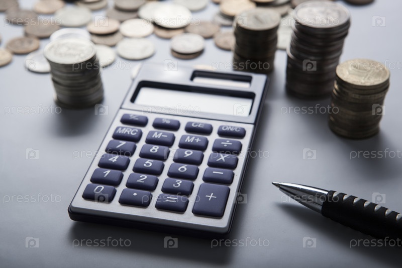 Горсть российских рублей с калькулятором