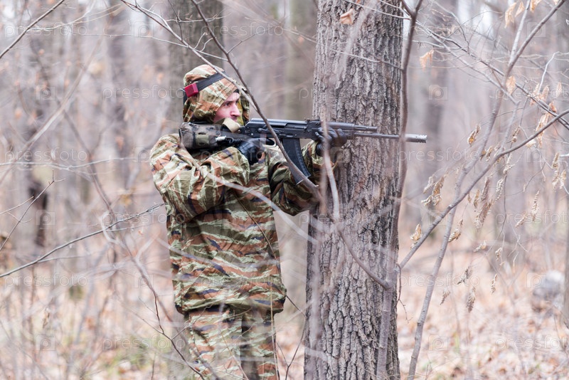 Солдат в камуфляжной униформе