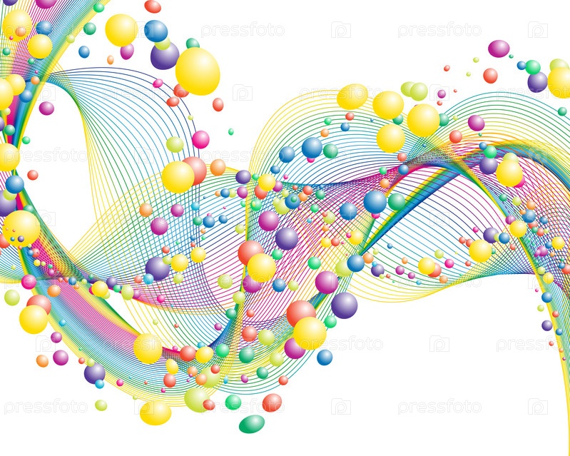 Абстрактные красочные линии и пузырьки на белом фоне