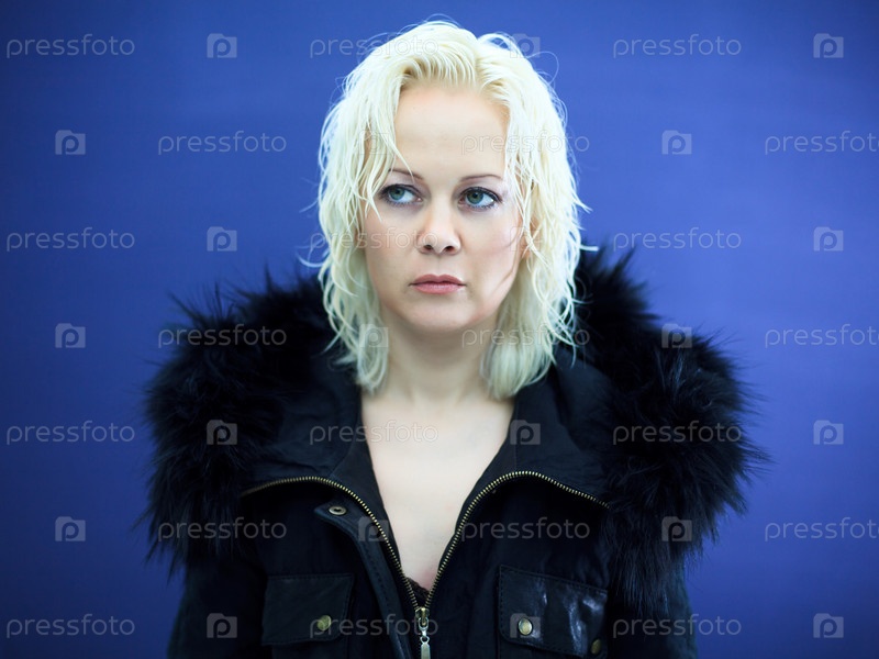 Портрет светловолосой женщины на синем фоне