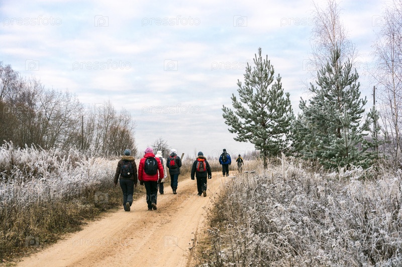 Туристы на лесной дороге