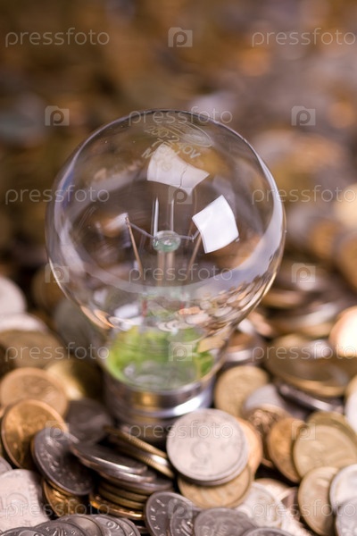 Лампочка на фоне монет
