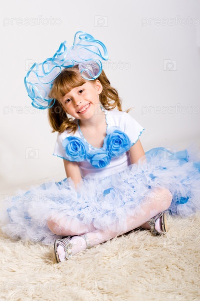 Радостная девочка сидит на ковре