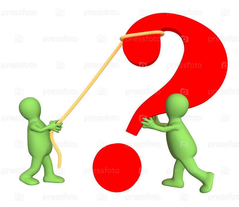 Два стилизованных человечка, поднимающие вопросительный знак
