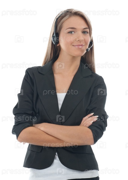 Оператор телефонной службы поддержки, на белом фоне