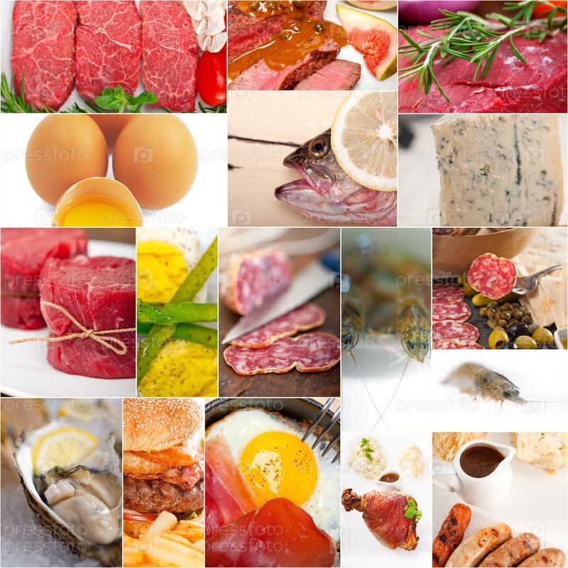 Коллаж из пищи с высоким содержанием белка