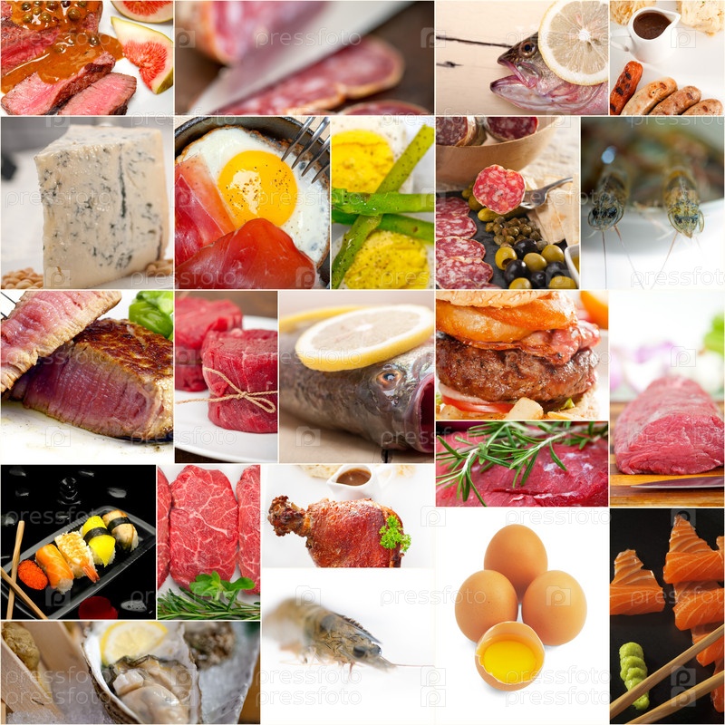 Коллаж из пищи с высоким содержанием белка