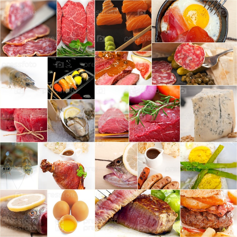 Коллаж из пищи с высоким содержанием белка