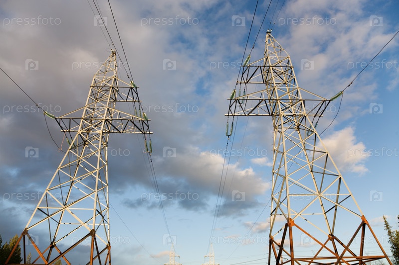 Две высоковольтные башни на фоне облачного неба