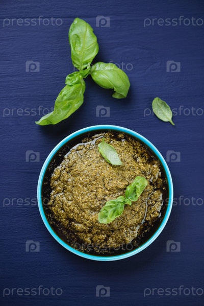 Соус песто на темно-синем фоне